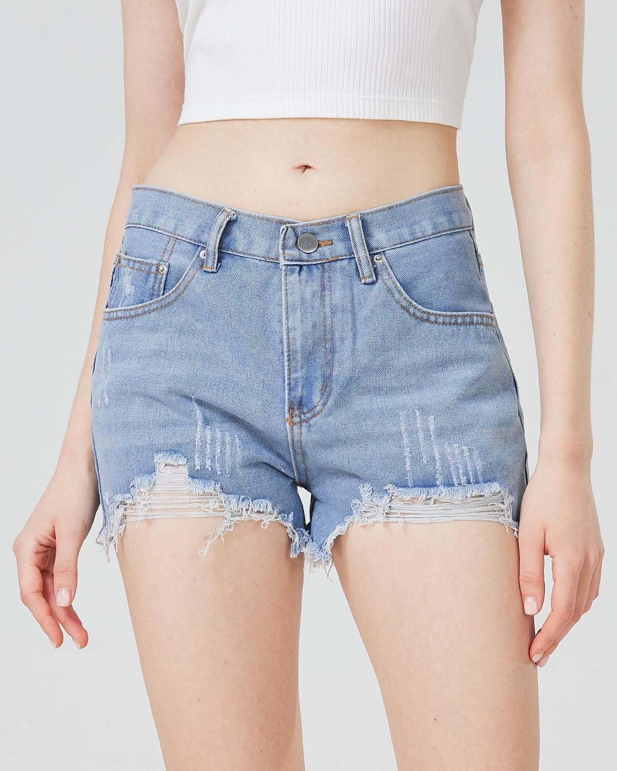 - These distressed jean shorts women featured in a stretch denim fabric, which are breathable, comfortable to wear. 4 inch inseam shorts women.