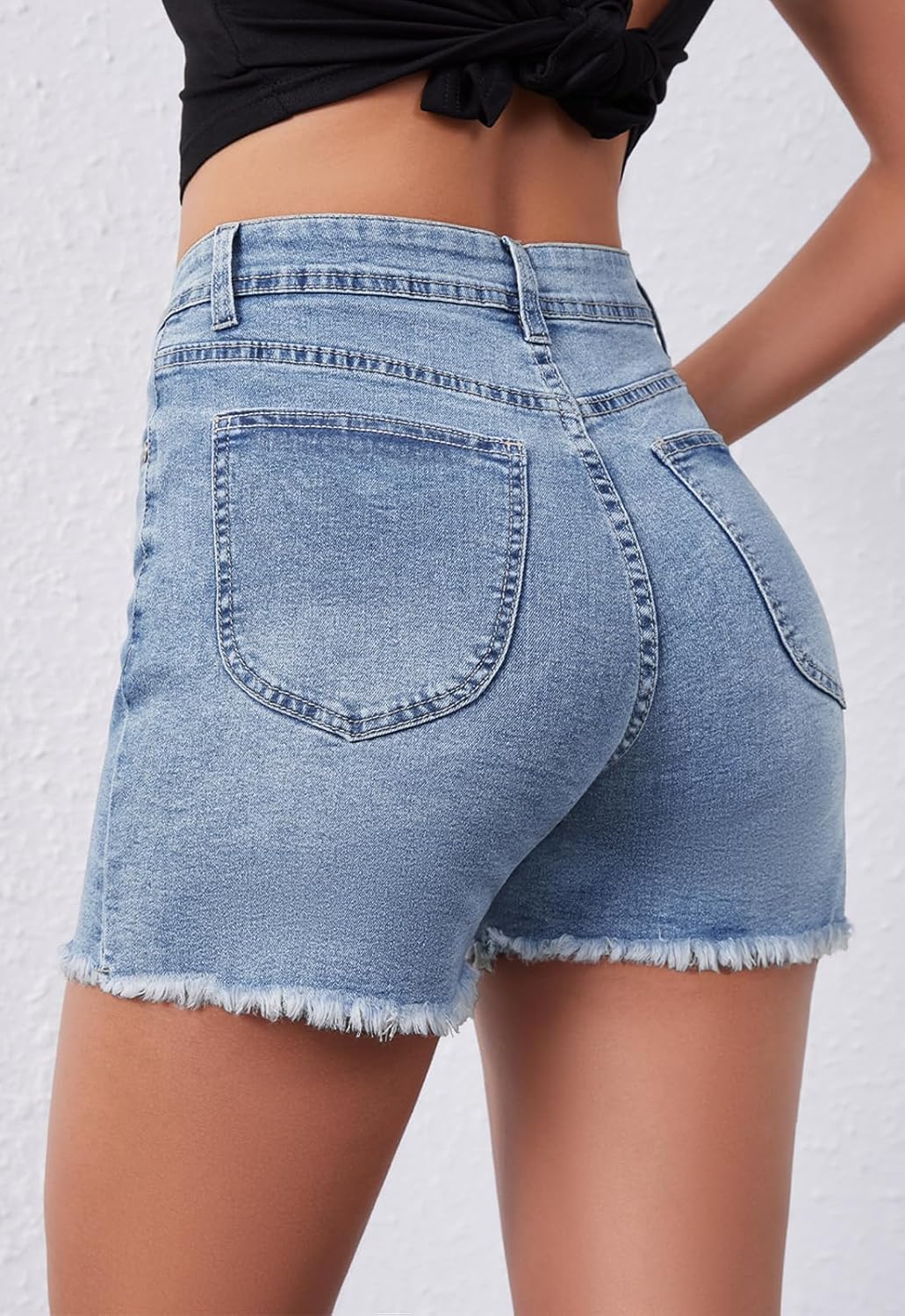Casual Black Jean Shorts for Women High Rise Frayed Raw Hem Stretchy Denim Shorts