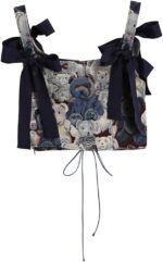 Korean Cute Bear Bow Women Suspender Vest Vintage Casual Sleeveless Off Shoulder Ladies Crop Tops