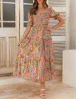 Women’s 2025 Summer Boho Floral Print Square Neck Ruffle Swing Beach Long Maxi Dress