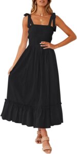 Women’s 2025 Summer Boho Spaghetti Strap Square Neck Solid Color Ruffle A Line Beach Long Maxi Dress