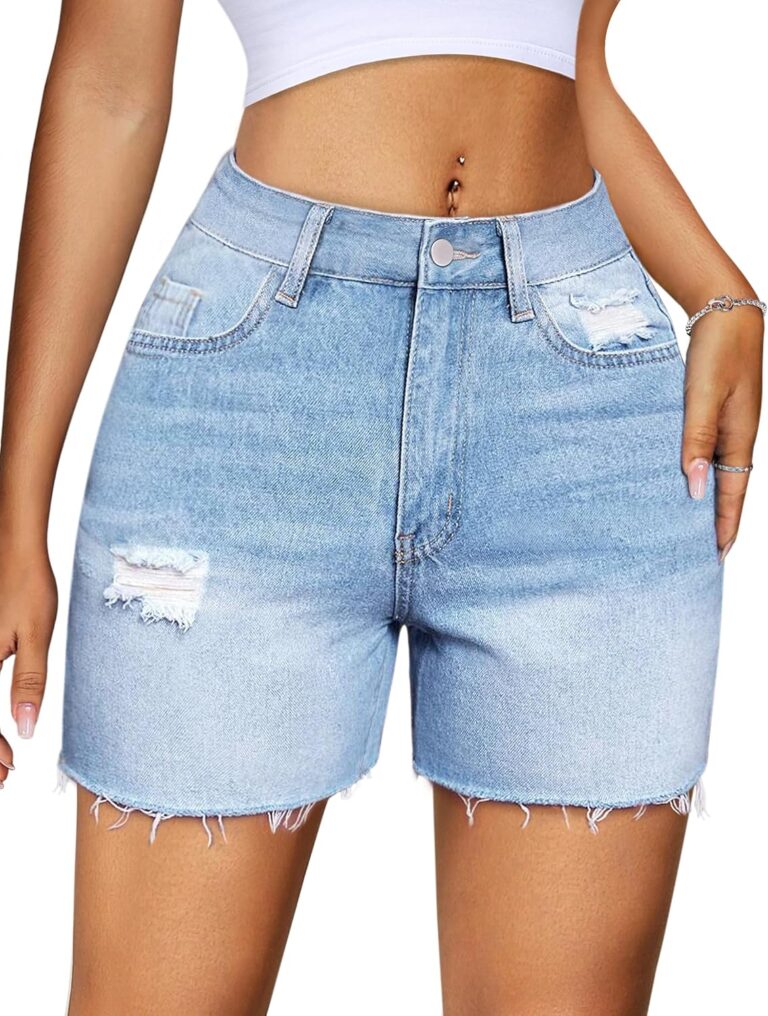 Denim Shorts for Women Mid Rise Ripped Jean Shorts Stretchy Folded Hem Hot Short Jeans