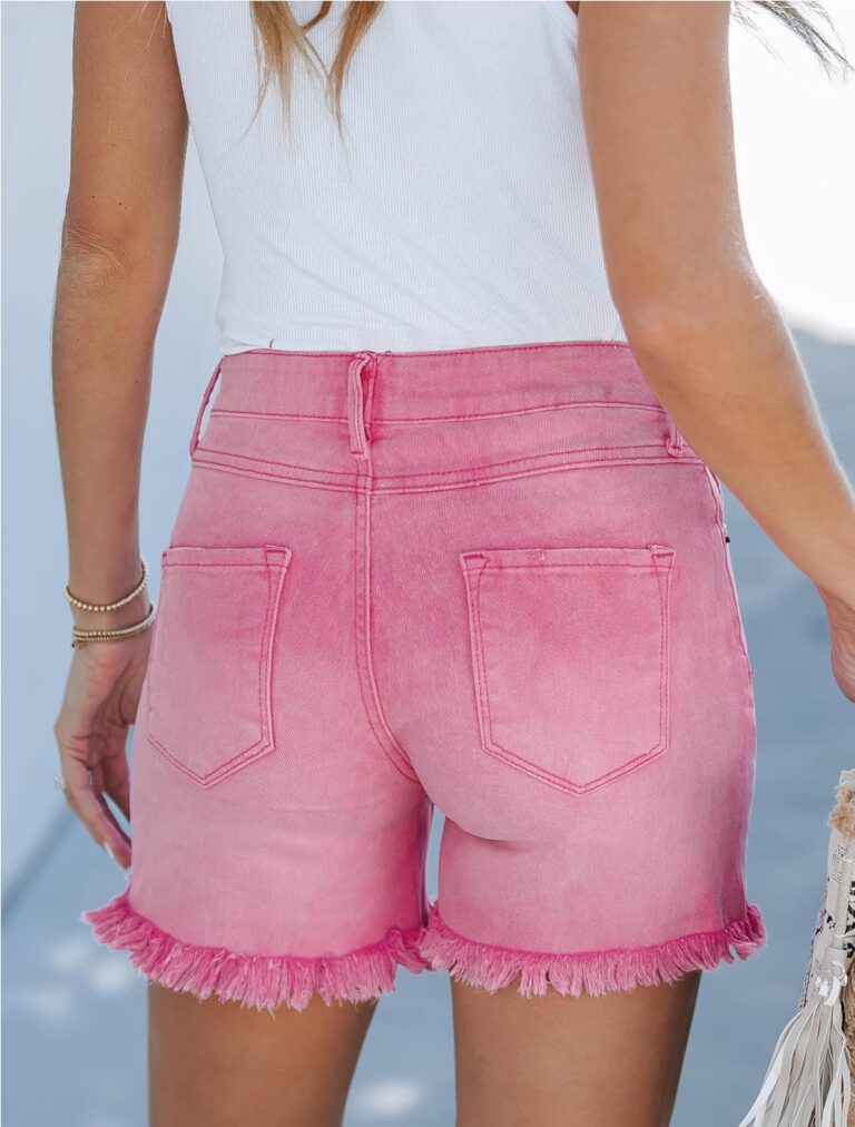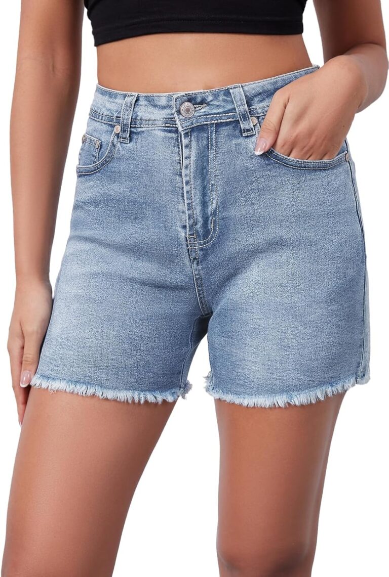 Casual Black Jean Shorts for Women High Rise Frayed Raw Hem Stretchy Denim Shorts